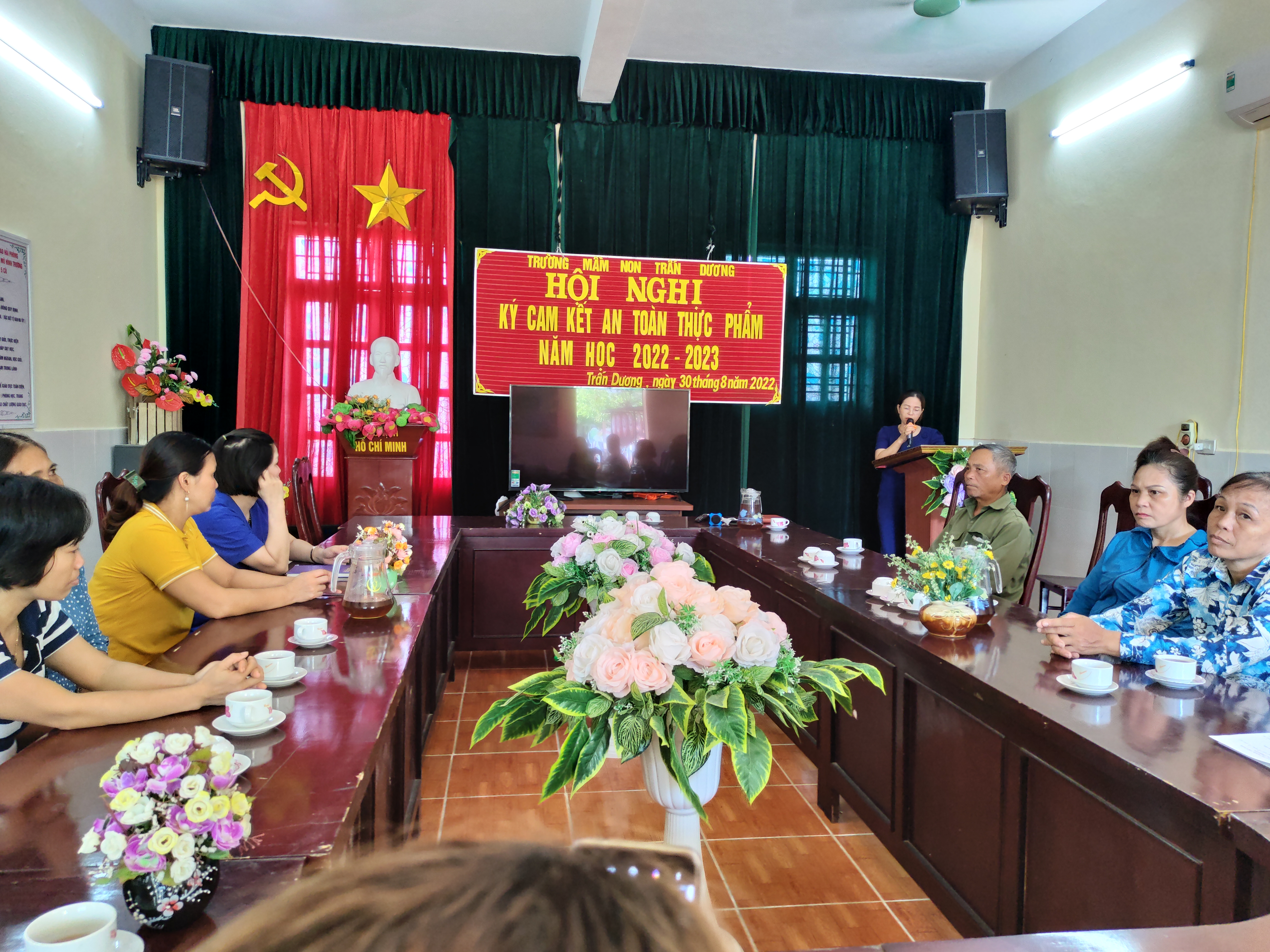 Bữa ăn hợp lý, đảm bảo vệ sinh an toàn, sẽ là nguồn sức khoẻ, nguồn vui và hạnh phúc hàng ngày ở các gia đình. Chính vì điều đó trường mầm non Trấn Dương luôn chú trọng công tác an toàn trong thực phẩm cho các bé trong trường mầm non bắt đầu từ nguồn cung cấp thực phẩm sạch, đảm bảo an toàn. Ngay từ đầu năm học 2022-2023 trường mầm non Trấn Dương triển khai Hội nghị ký cam kết thực phẩm sạch, đảm bảo an toàn. Về dự hội nghị có các đ/c lãnh đạo địa phương, Trạm trưởng trạm Y tế xã, đại diện BCH hội PHHS, Ban giám hiệu nhà trường cùng các nhà cung cấp thực phẩm. Hội nghị đã được nghe và thống nhất thỏa thuận trong hợp đồng, 2 bên đã đồng thuận và ký vào bản hợp đồng. Hội nghị đã diễn ra thành công tốt đẹp!