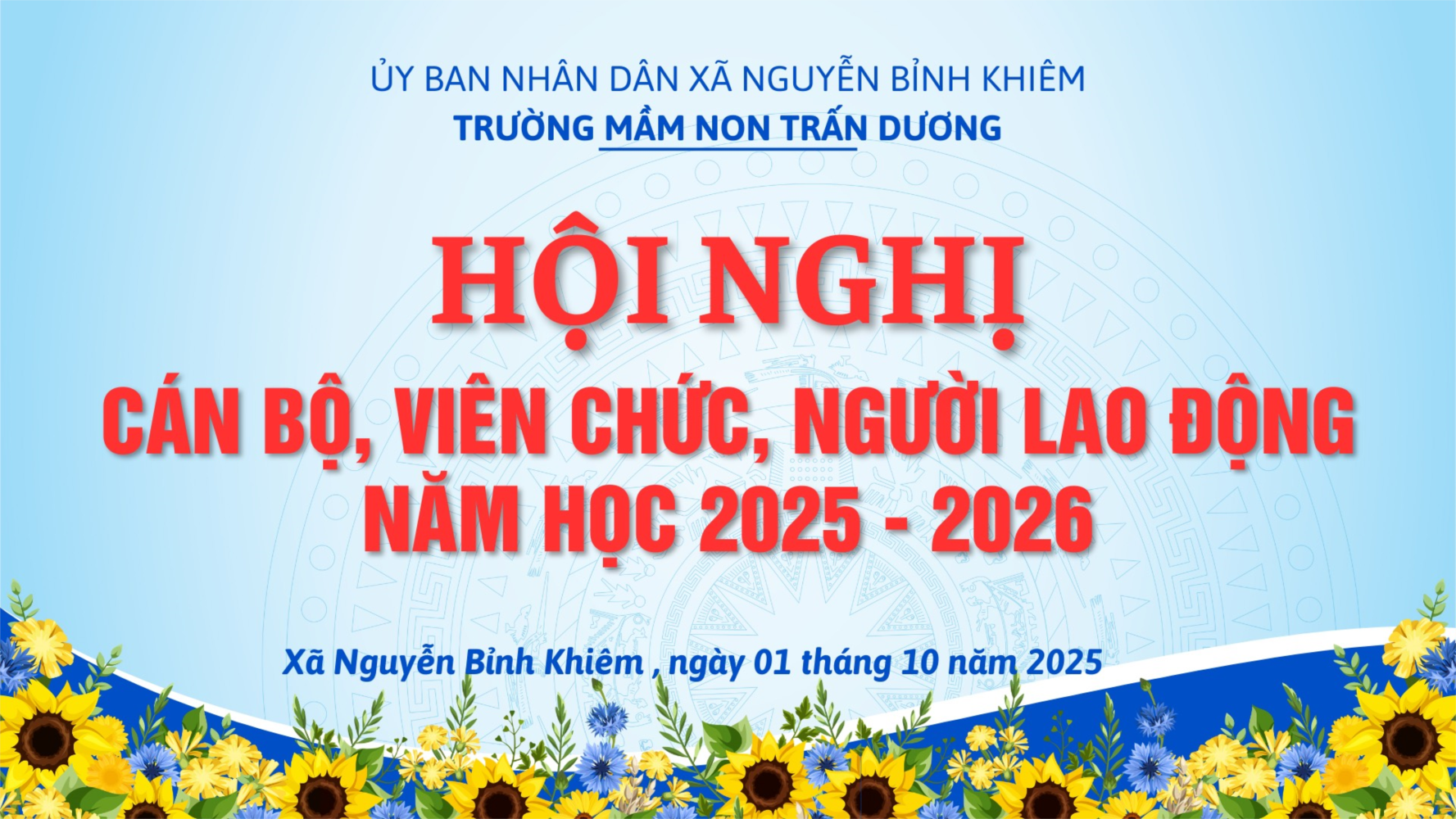 Ngày 01 tháng 10 năm 2025, trường Mầm non Trấn Dương đã long trọng tổ chức Hội nghị Cán bộ, Công chức, Viên chức năm học 2025 – 2026. Đây là dịp để tập thể sư phạm nhà trường cùng nhìn lại những kết quả đã đạt được trong năm học qua, đồng thời thảo luận, đề ra phương hướng, nhiệm vụ cho năm học mới.