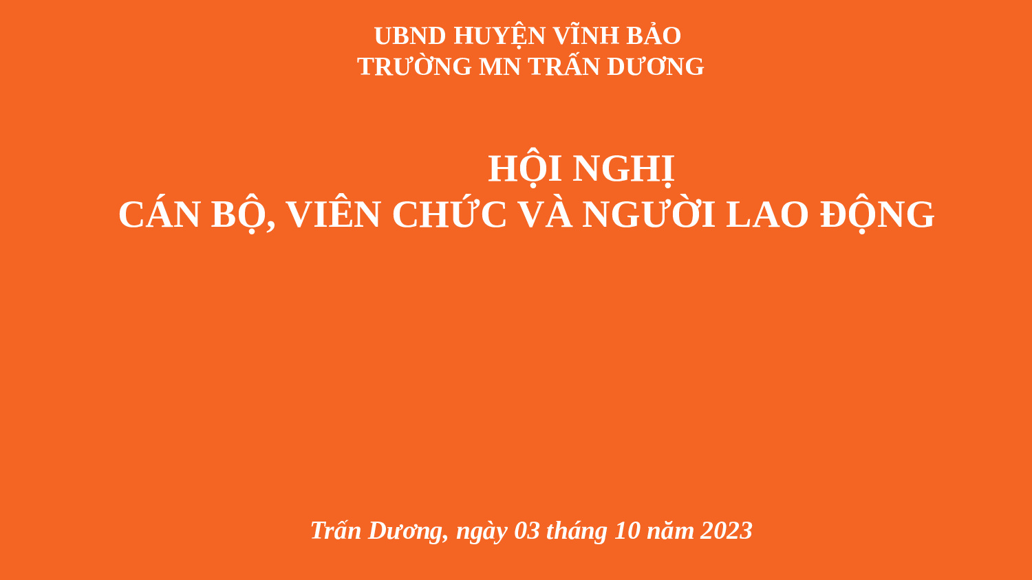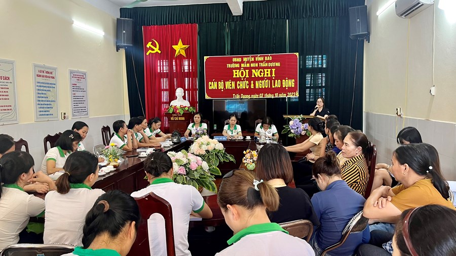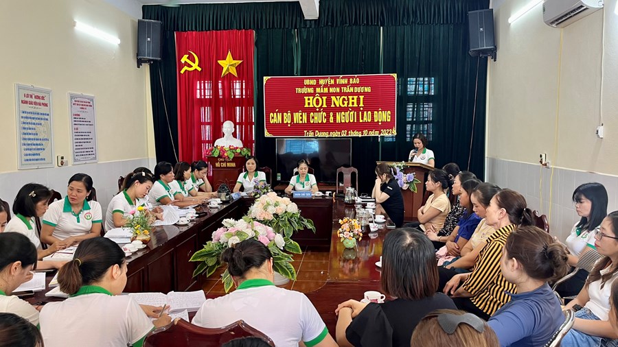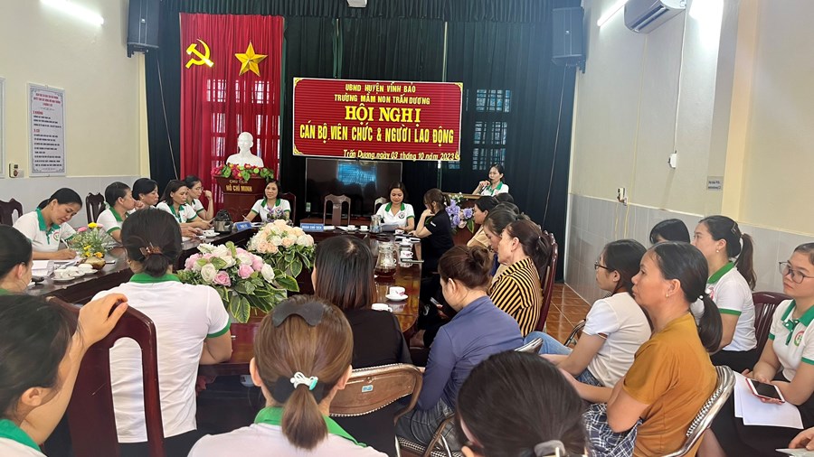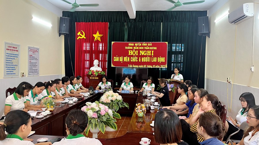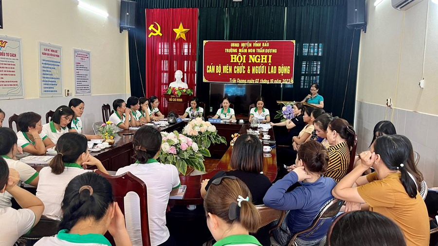 Thực hiện công văn hướng dẫn của Liên đoàn lao động huyện Vĩnh Bảo, được sự chỉ đạo của các cấp lãnh đạo . Ngày 03/10/2023 trường mầm non Trấn Dương tổ chức hội nghị Cán bộ, viên chức, và người lao động năm học 2023- 2024
