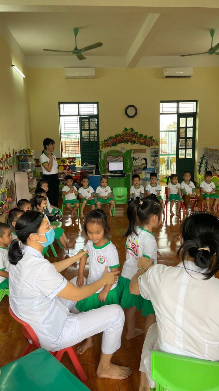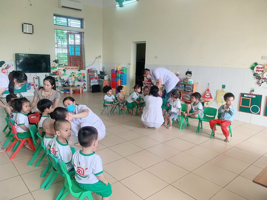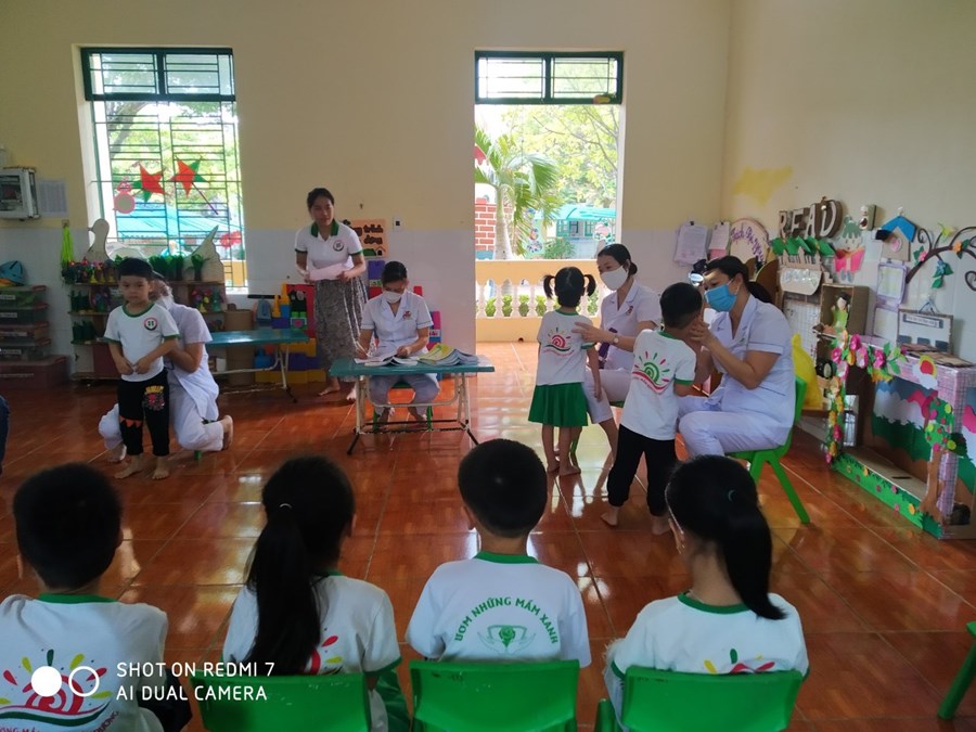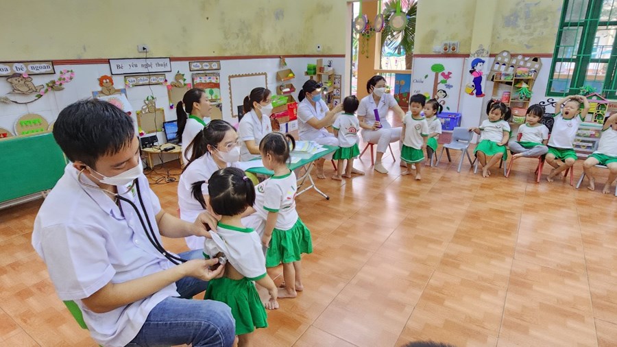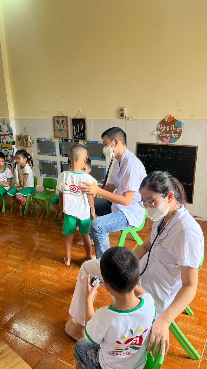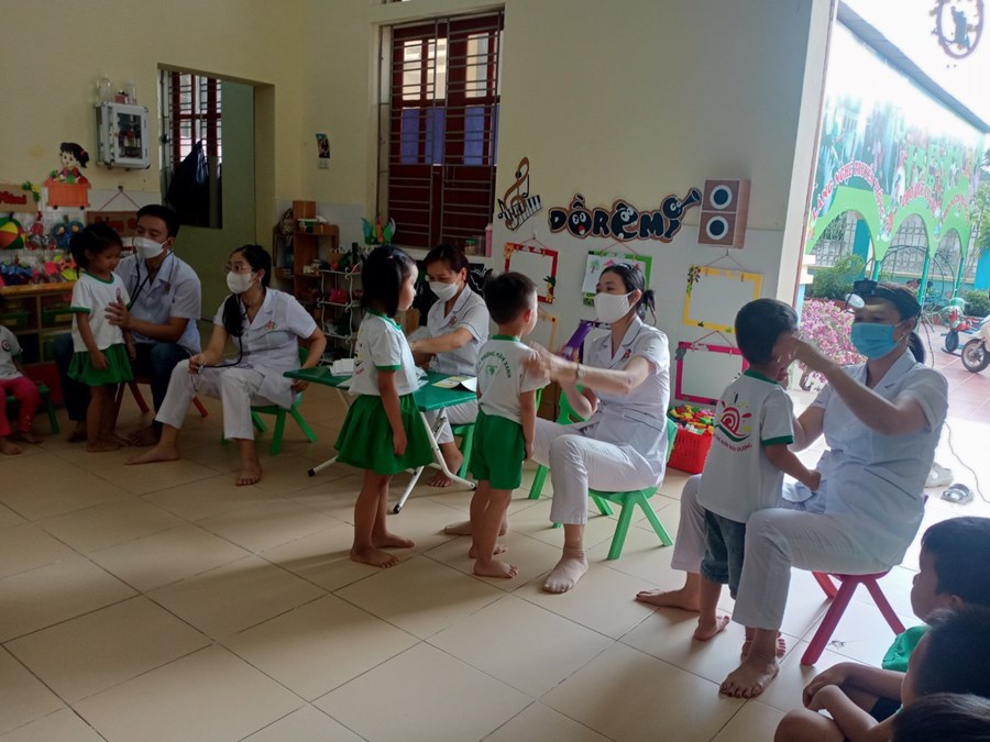 Sau đây là một số hình ảnh khám sức khỏe định kỳ tại trường Mầm non Trấn Dương: