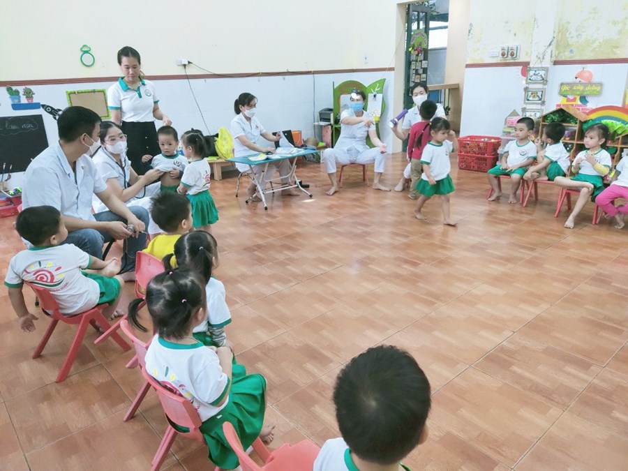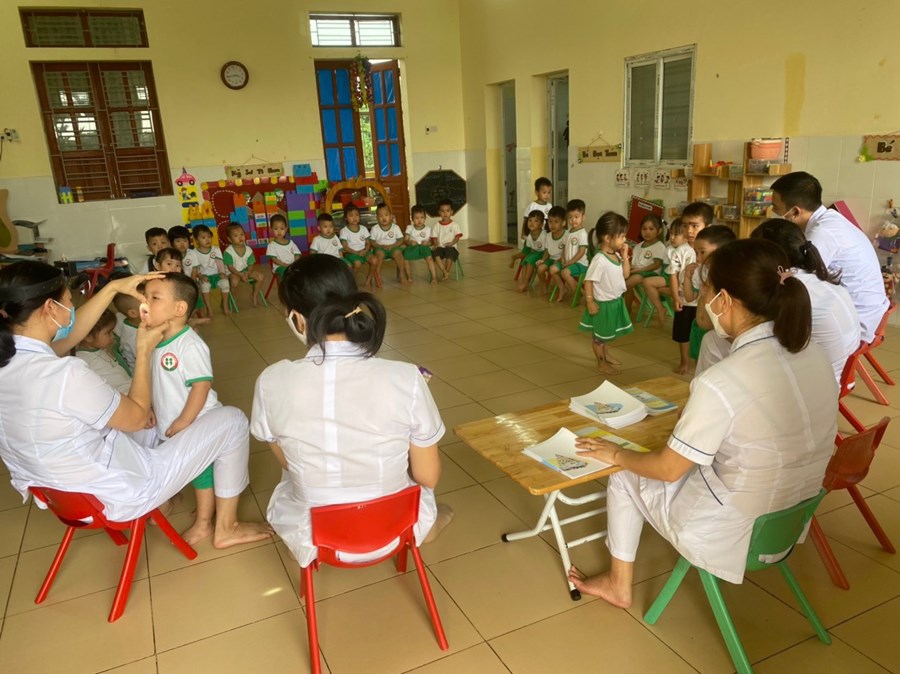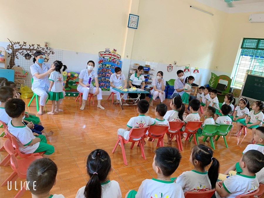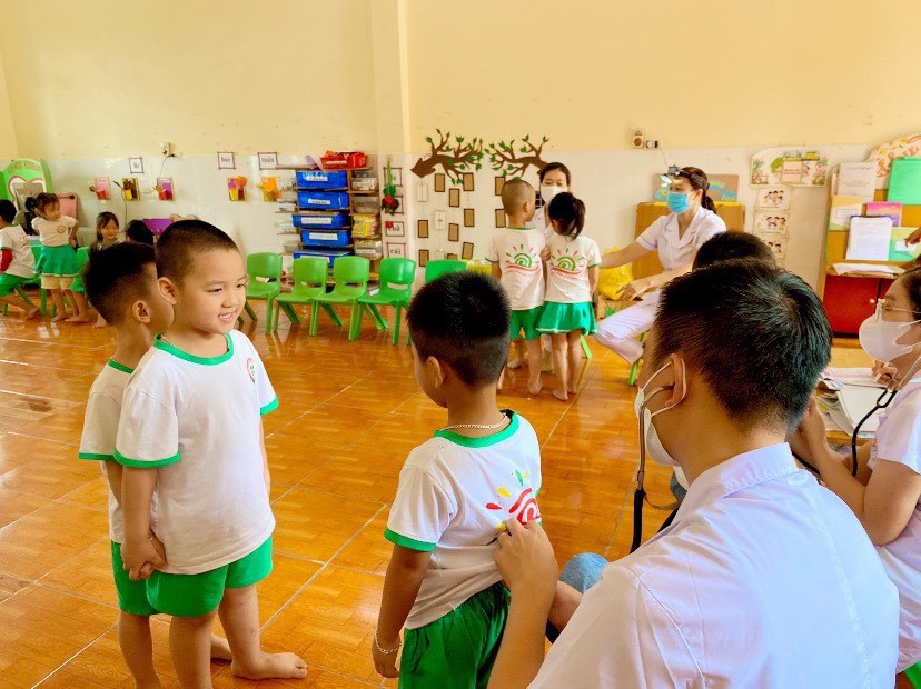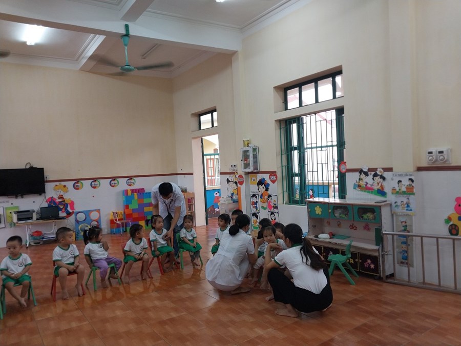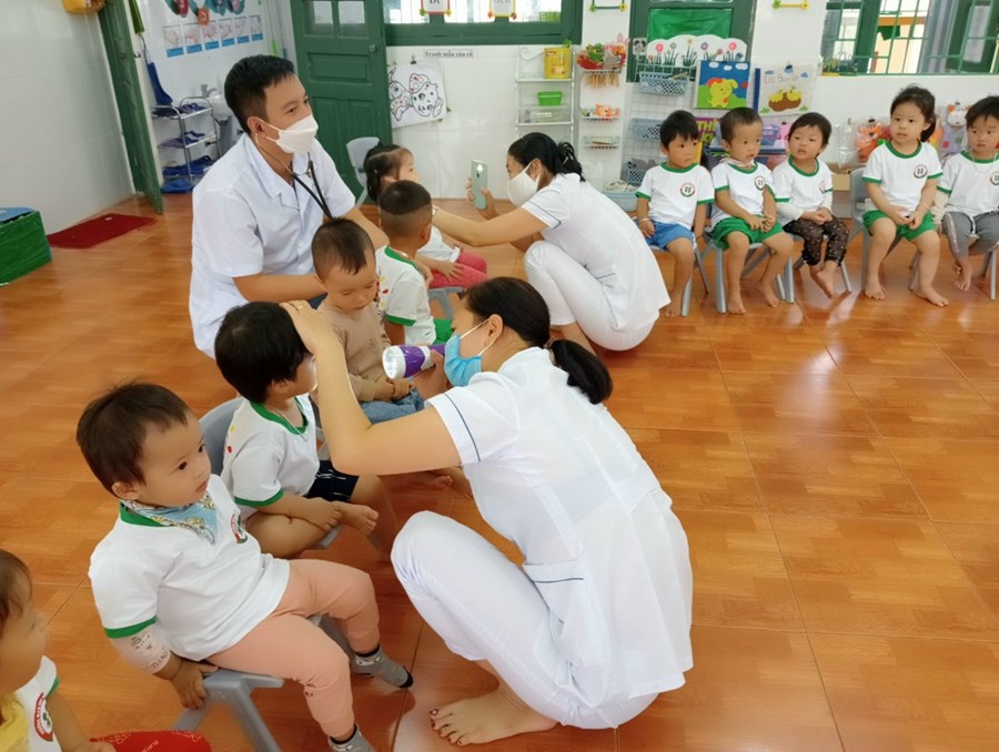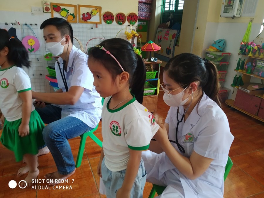 Sau đây là một số hình ảnh khám sức khỏe định kỳ tại trường Mầm non Trấn Dương: