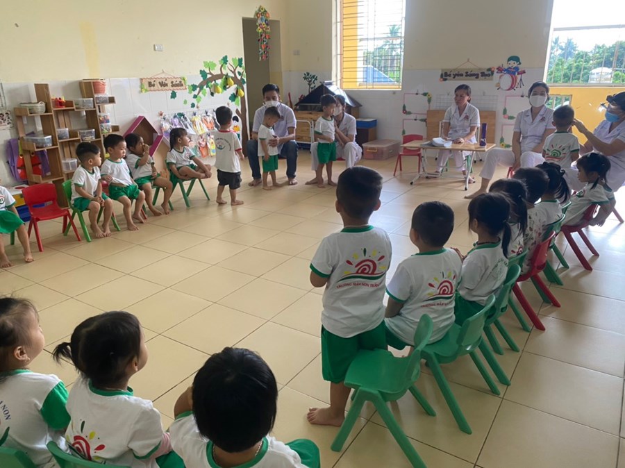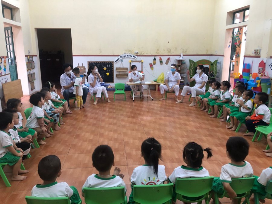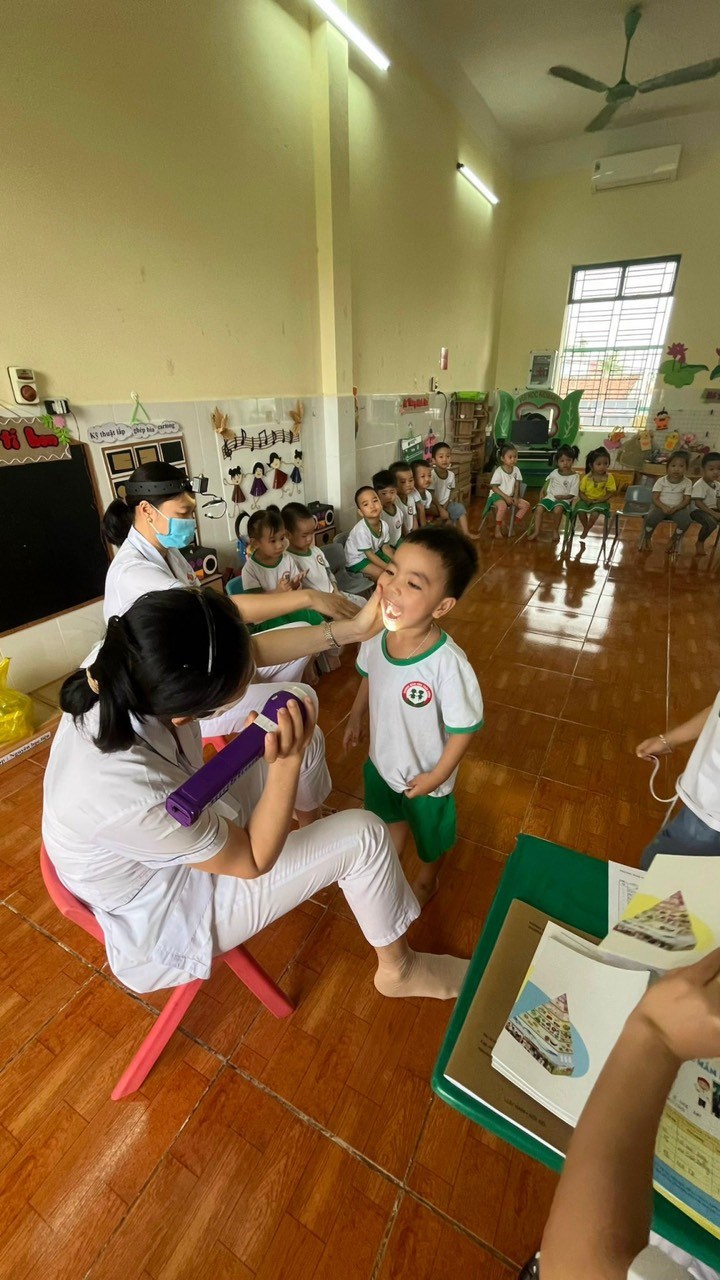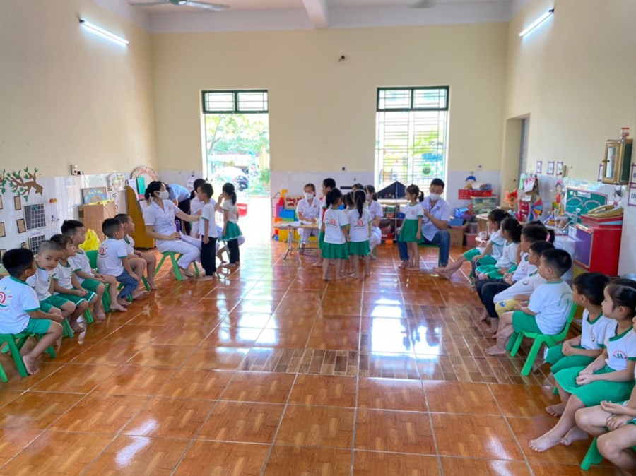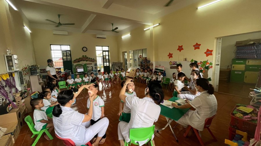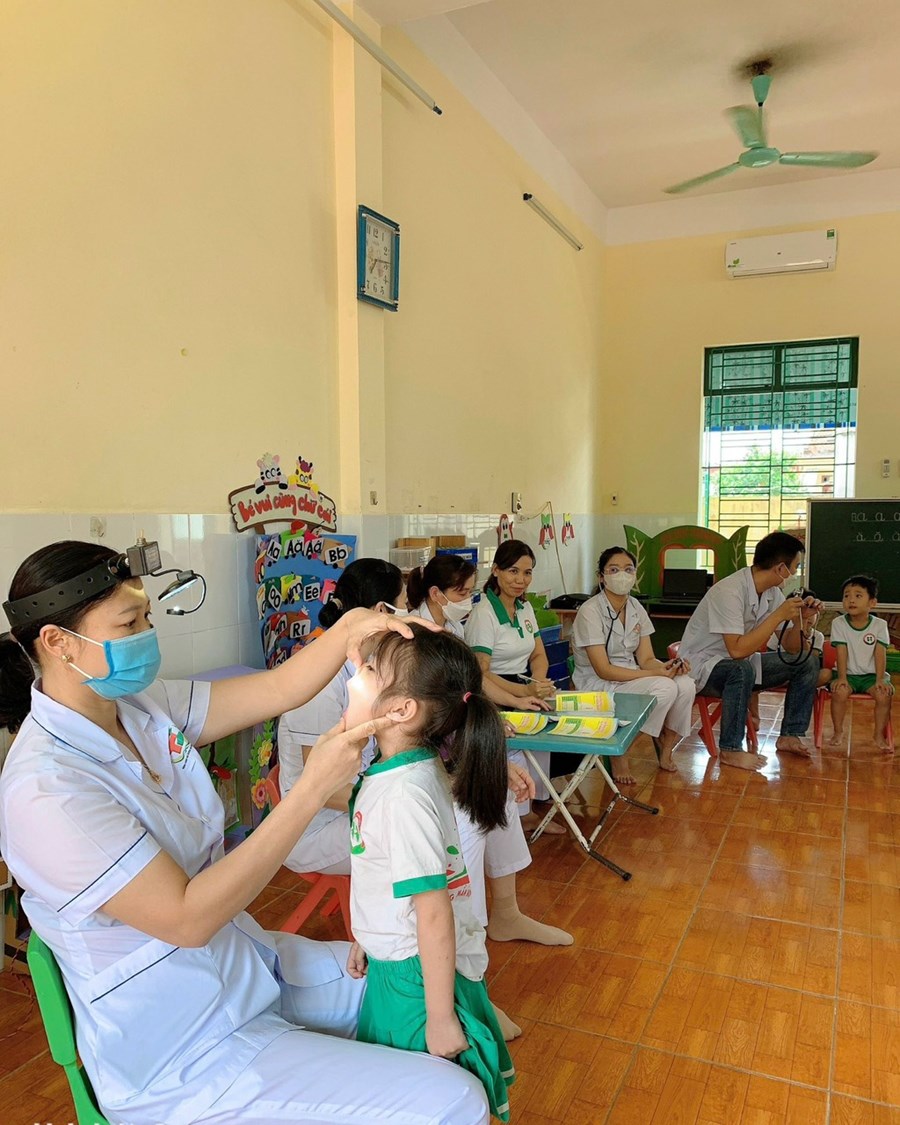 Sau đây là một số hình ảnh khám sức khỏe định kỳ tại trường Mầm non Trấn Dương:
