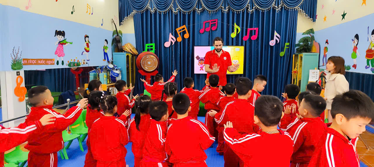 Giờ học không đặt nặng kiến thức mà chú trọng tạo cho trẻ sự mạnh dạn, tự tin khi giao tiếp, phát triển khả năng nghe và phát âm bước đầu. Trẻ hào hứng tham gia các trò chơi tương tác, chủ động trả lời, cùng bạn học và sử dụng tiếng Anh trong những tình huống gần gũi.