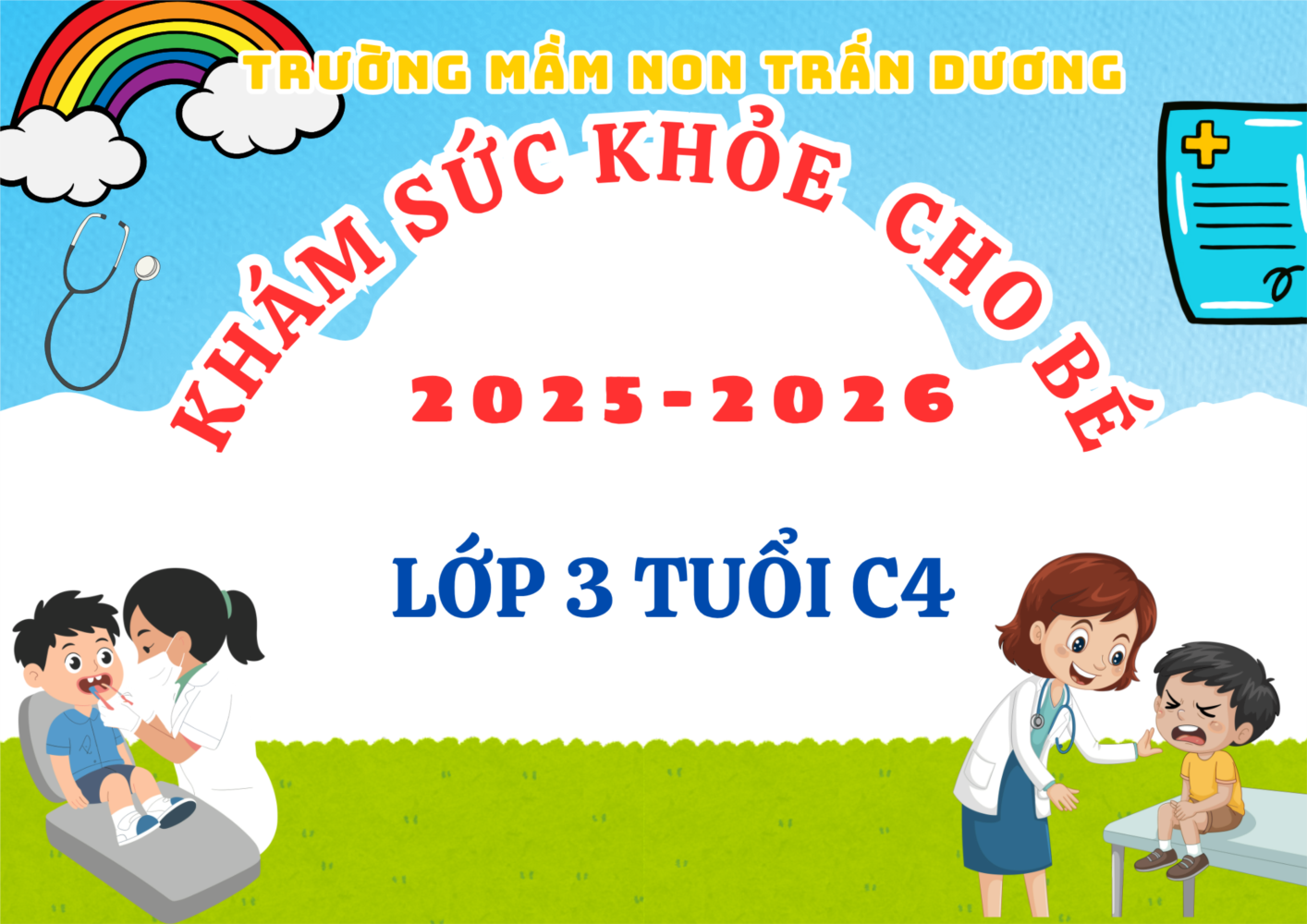 Hôm nay ngày 09/10/2025 Trường Mầm non Trấn Dương phối hợp với Bệnh viện Đa Khoa Nam Am tổ chức khám sức khỏe định kỳ cho các cháu trong nhà trường với các nội dung kiểm tra: Cân nặng, chiều cao, khám tai, mắt, mũi, họng và một số bệnh liên quan đến đường hô hấp, da liễu