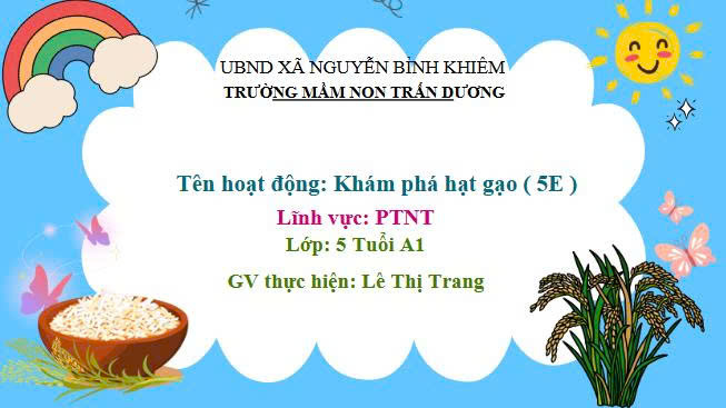 Hoạt động khám phá hạt gạo là một hoạt động học tập ý nghĩa, giúp các bé 5 tuổi được tìm hiểu về loại lương thực quen thuộc trong đời sống hằng ngày. Mở đầu hoạt động, cô giáo giới thiệu cho trẻ các loại gạo khác nhau như gạo tẻ và gạo nếp, tạo sự tò mò và hứng thú cho các bé. Trong quá trình khám phá, trẻ được trực tiếp quan sát, sờ, ngửi và so sánh để nhận biết đặc điểm của từng loại hạt gạo về màu sắc, hình dạng, kích thước và mùi thơm. Các bé rất hào hứng khi được trao đổi, trả lời câu hỏi và chia sẻ hiểu biết của mình với cô giáo và bạn bè.